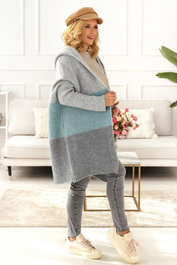 Kardigan trio szary/turkus
