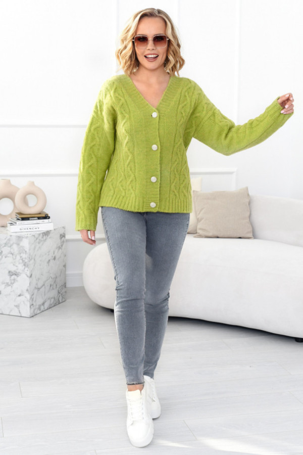 Krótki sweter z ozdobnym splotem tamika limonka