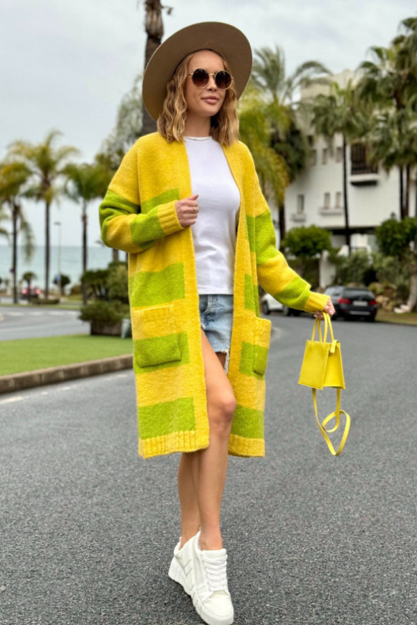 Długi kardigan w kolorowe pasy arleta cytryna-limonka