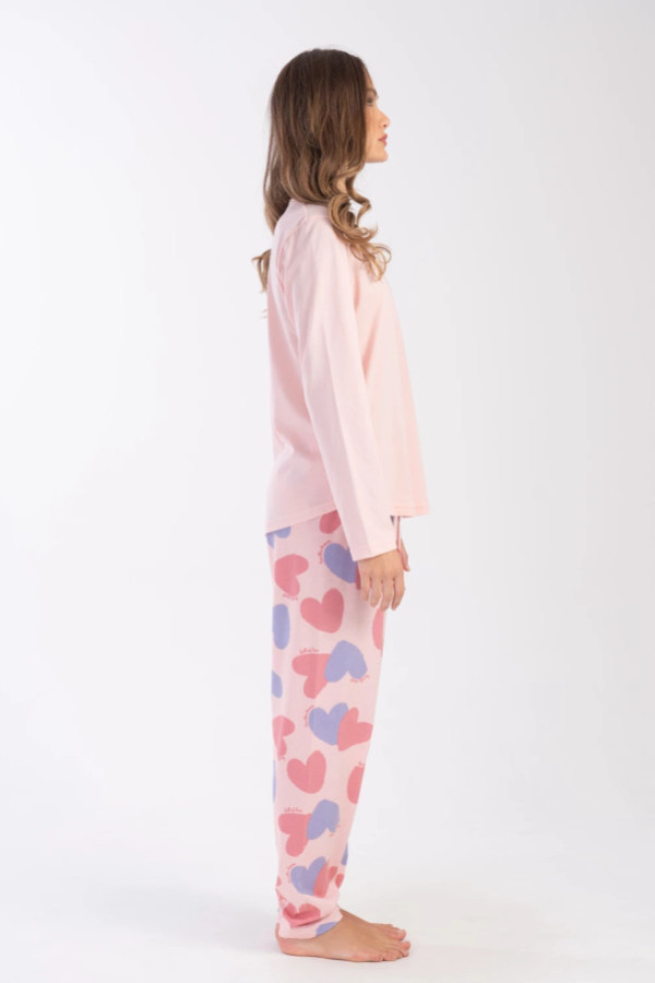 Piżama damska plus size w kolorze pudrowego różu komplet bluzka + spodnie serduszka dona