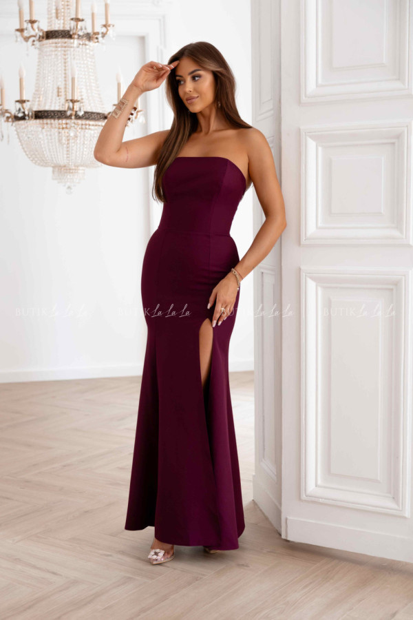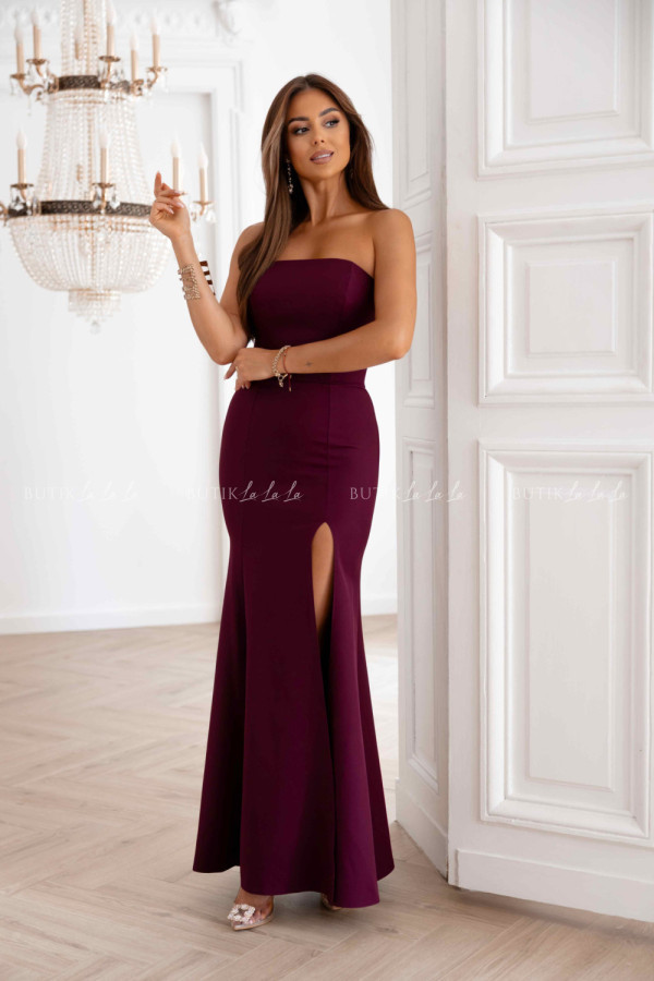 Sukienka maxi burgundowa z rozcięciem stephanie