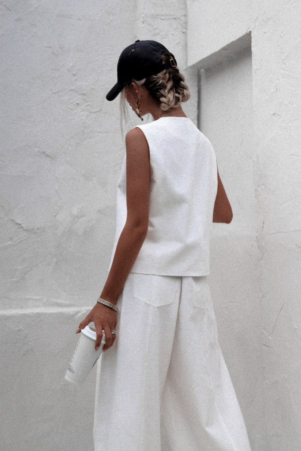 Kamizelka DELANEY to bezapelayjny MUAT HAVE w każdej garderobie! Model o luźniejszym kroju, który zapewni komfort oraz wygodę noszenia. Zapięcie regulowane na guziki w kontrastowym kolorze. Asymetryczne wykończenie dołu nadaje całości wyjątkowego charakteru. Idelanie sprawdzi się również w stylizacji z bluzką basic z długim rękawem podczas chłodniejszych dni.