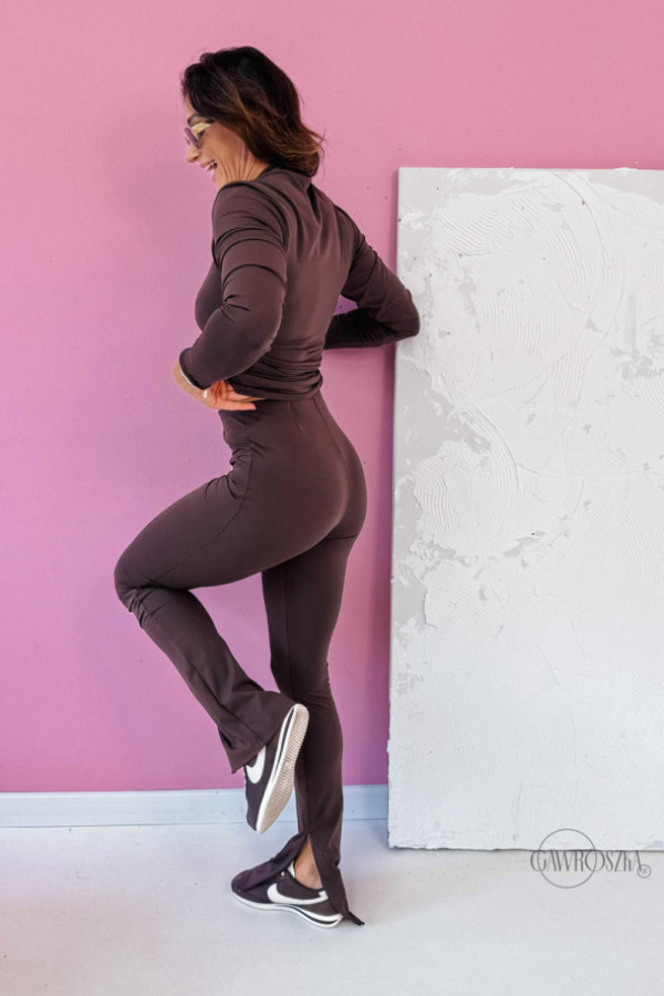 Spodnie z leginsy z boku ibiza - mleczna czekolada