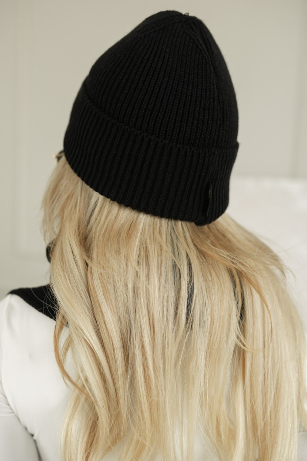 Stylowa czapka wykonana z elastycznego, prążkowanego materiału, który idealnie dopasowuje się do głowy i zapewnia komfort w chłodne dni. Z tyłu znajduje się subtelna naszywka, dodająca całości minimalistycznego, nowoczesnego charakteru. Klasyczny fason sprawia, że pasuje do każdej zimowej stylizacji.