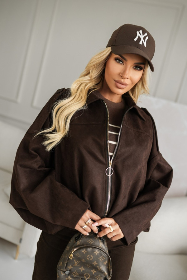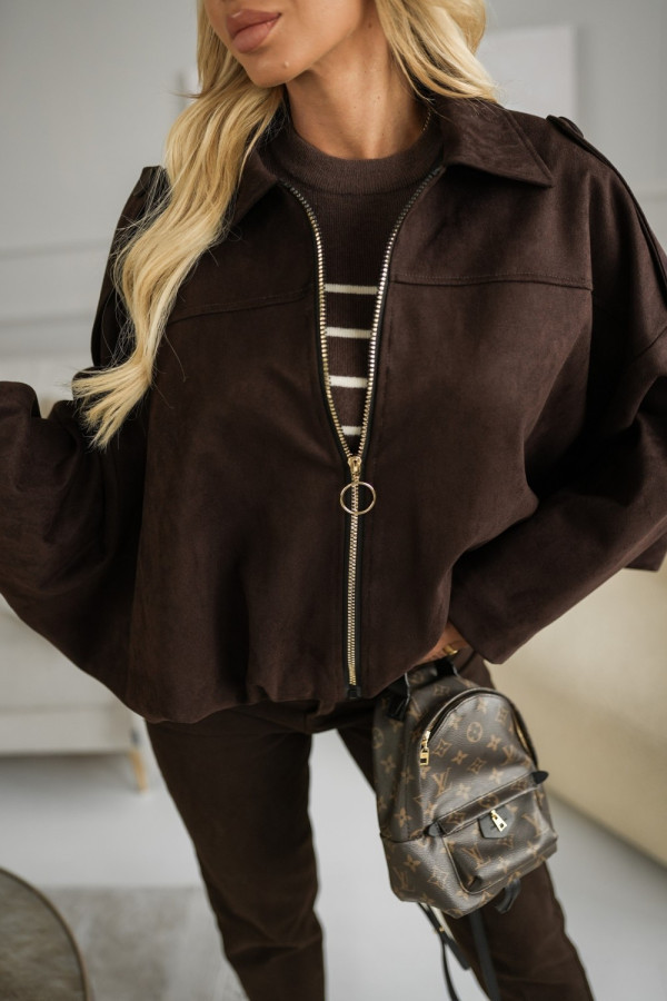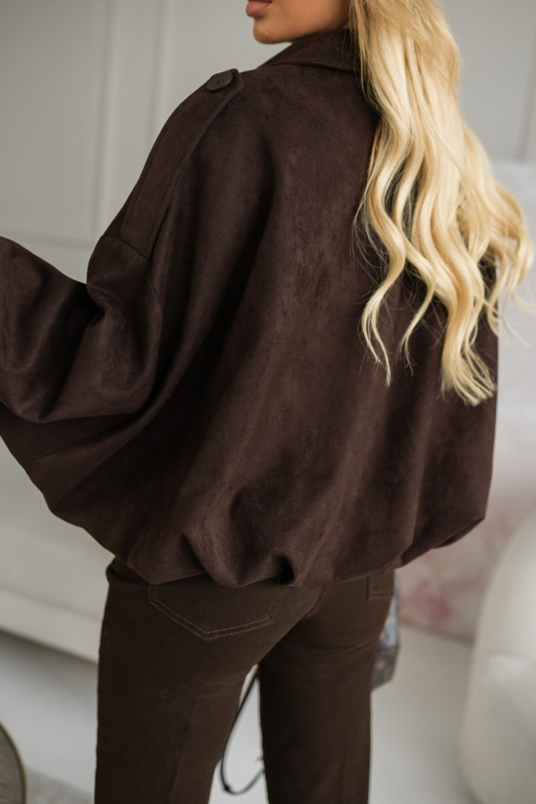 Kurtka zamszowa bomberka o kroju nietoperz czekoladowa